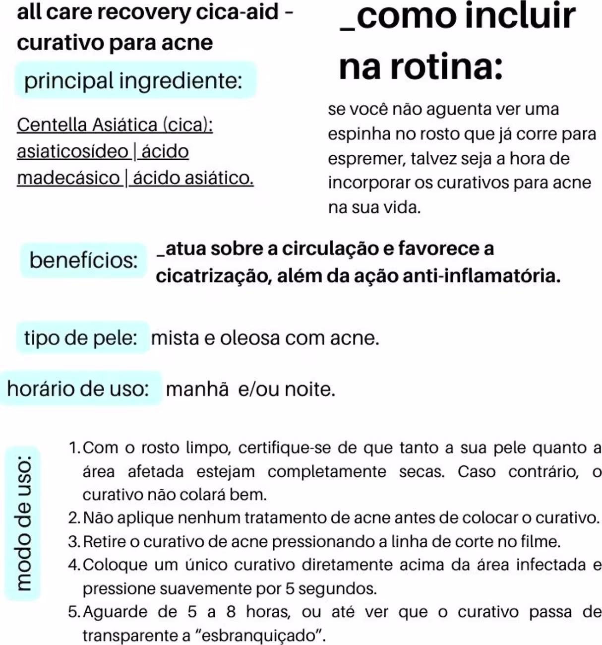 2° Passo: Não aplique nenhum tratamento de acne antes de colocar o curativo.