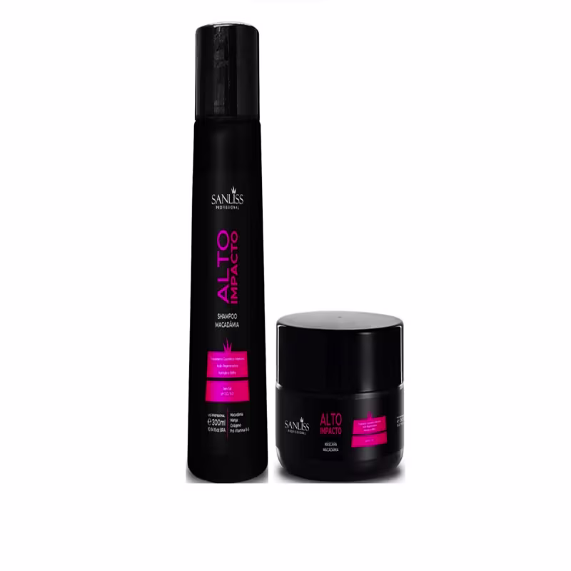 O Kit Sanliss Alto Impacto traz o poder da Macadâmia para transformar a sua rotina capilar, oferecendo uma limpeza suave e uma hidratação profunda para cabelos revitalizados. Composto por 1 Alto Impacto Shampoo Macadâmia de 300 ml e 1 Alto Impacto Máscara Macadâmia de 300 gr, este kit é ideal para todos os tipos de cabelos, especialmente os secos, ressecados e danificados.