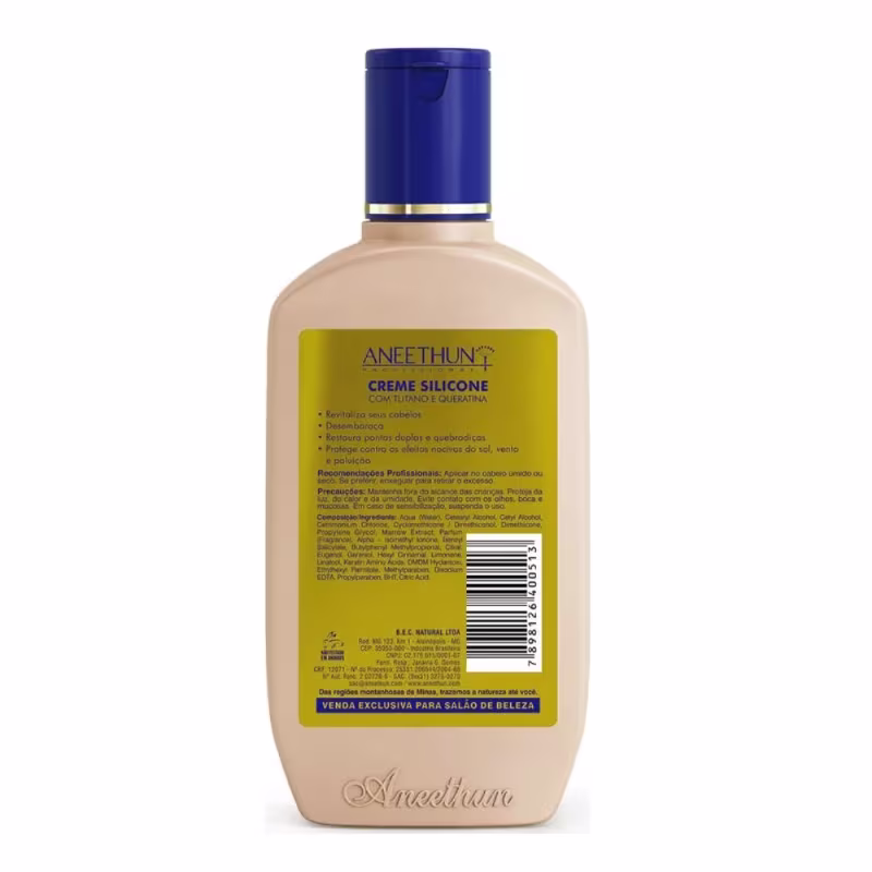 Aneethun Linha A - Creme de Silicone 250g: conta com ativos que facilitam o desembaraço, além de proteger as madeixas contra agentes externos e iluminar os fios.
