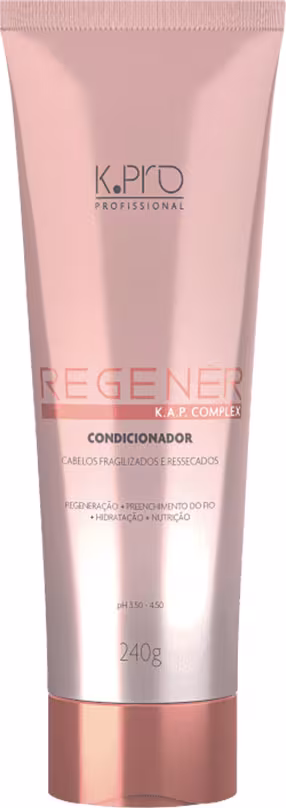 K.Pro Profissional Regenér - Condicionador 240g: garante cutículas totalmente seladas e suaves para devolver o brilho, sedosidade e eliminar o frizz. Além disso, enriquecido com ácido hialurônico, ele preenche os fios que estão porosos, opacos e ásperos para que fiquem macios, maleáveis, com movimento e luminosos.