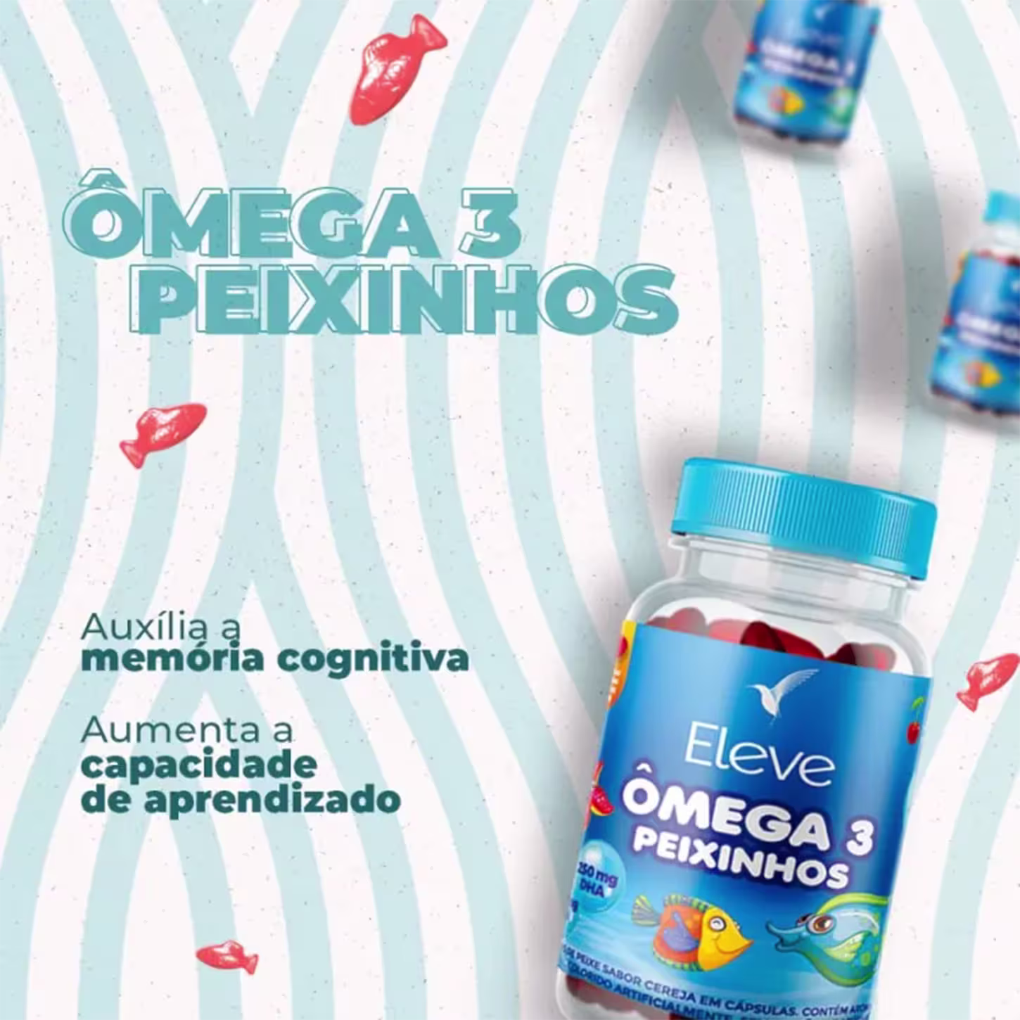 Kit Ômega 3 PEIXINHOS Infantil - 180 Dias - 720 cápsulas mastigáveis + E-book