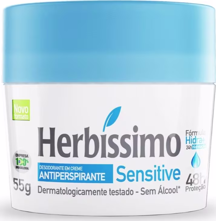 Não sei o CEPO Creme Desodorante Antiperspirante Sensitive possui fórmula especialmente desenvolvida com glicerina vegetal e óleo de girassol, que promovem a hidratação das axilas por até 24 horas.