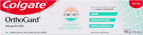 A pasta de dente Orthogard da Colgate foi especialmente desenvolvida para quem faz uso de aparelho ortodôntico. Sua fórmula contém 2% de Citrato de Zinco e 3 vezes mais flúor, que, juntos, reduzem as cáries, diminuem um possível aparecimento de manchas brancas e protegem os dentes de descalcificações, além de promover uma limpeza completa.
