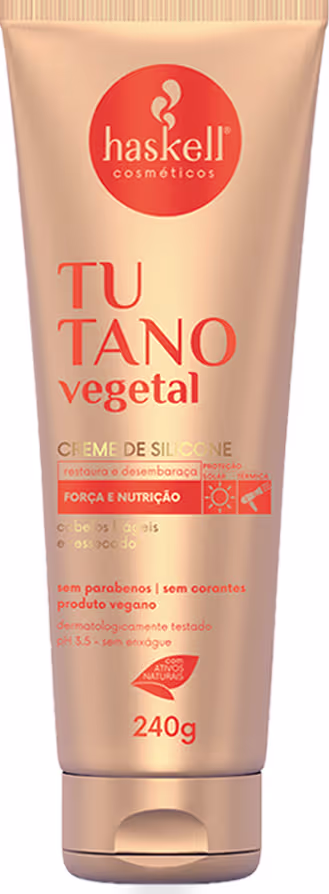 Modo de usar: nos cabelos limpos e úmidos, aplique uma quantidade suficiente do creme de silicone na palma das mãos. Espalhe uniformemente pela extensão dos fios e finalize como desejar. Potencialize os resultados utilizando toda a linha Tutano Vegetal.