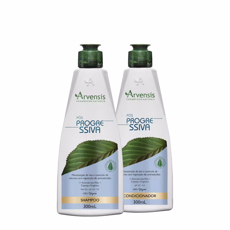 Arvensis Pós Progressiva - Shampoo 300ml: com formulação rica em aminoácidos, a linha Pós-Progressiva recupera a saúde dos cabelos alisados, nutrindo e devolvendo a massa, o brilho e o balanço natural, perdidos durante o processo químico. Oferece maior durabilidade do efeito liso e restauração da fibra capilar. Indicação: Cabelos submetidos a alisamentos definitivos ou temporários. Principais ativos: Manteiga orgânica de cupuaçu, 11 Aminoácidos Plus de origem vegetal. O Shampoo Pós-Progressiva confere limpeza eficiente e equilibrada, preservando a estrutura do fio. Possui um pH ideal para a manutenção do alinhamento dos cabelos. (300 ml) - pH 5 a 5,5.