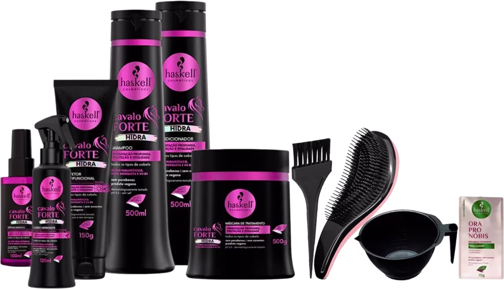 A linha Haskell Cavalo Forte Hidra também tem um cheirinho delicioso de cítrico frutal, que vai deixar os seus cabelos com um aroma incrível. E o melhor: ele não tem parabenos, nem corantes (exceto shampoo), então é super seguro para o seu cabelo.