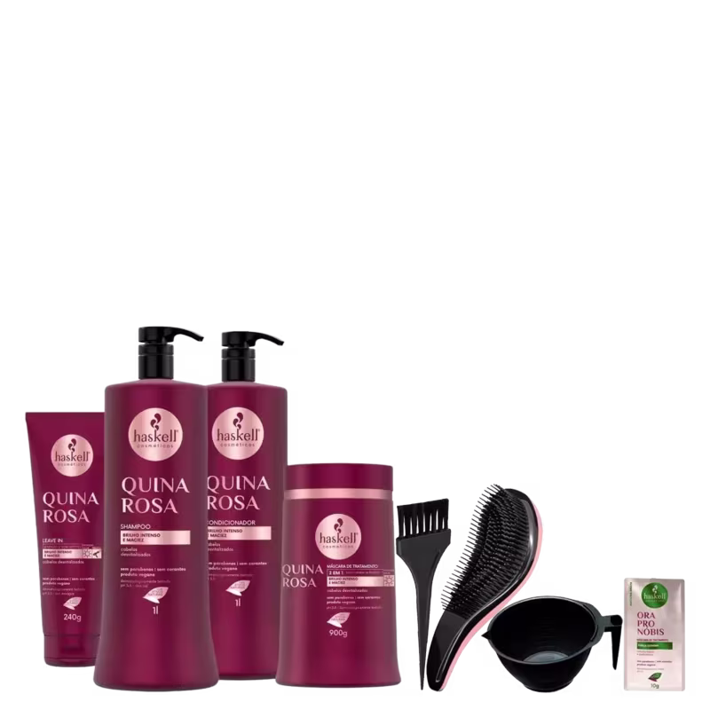 Kit Haskell Quina Rosa 1L Shp Cond Másc Leave +Kit Presente