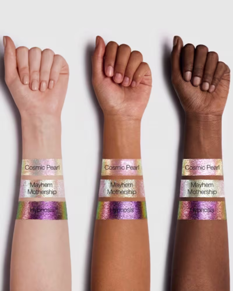 A fórmula inovadora deste gel apresenta flocos multichrome que capturam a luz de maneiras surpreendentes, revelando uma cascata de tons cintilantes e hipnotizantes. Use este gel versátil em seus olhos para um olhar dramático, destaque pontos estratégicos do rosto para um brilho sutil, ou aplique no corpo para uma aparência deslumbrante em eventos especiais.