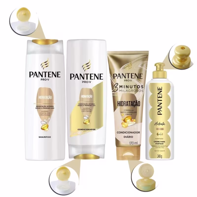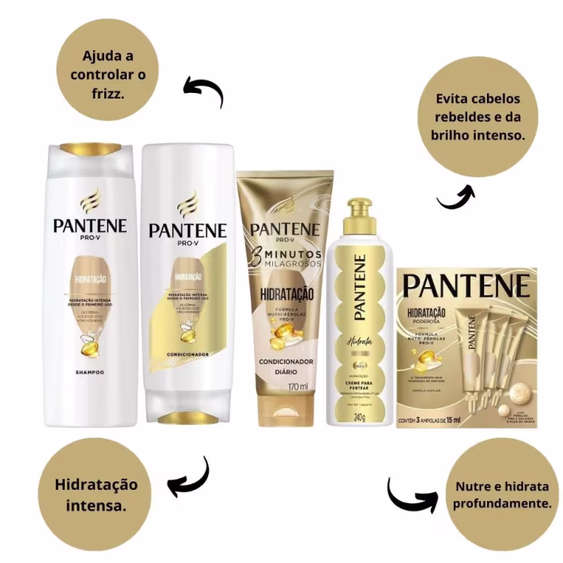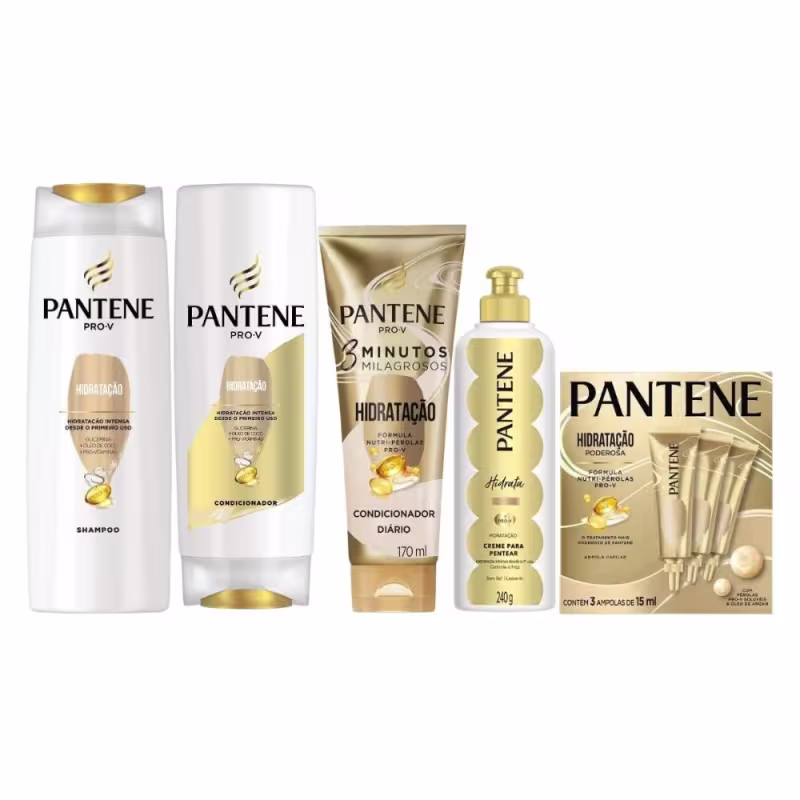 O Kit Pantene Hidratação é ideal para o tratamento de cabelos secos. São produtos formulados com ingredientes como pró-vitaminas, óleo de coco e glicerina, que nutrem e hidratam profundamente os fios, deixando os cabelos mais macios, brilhantes e revitalizados.