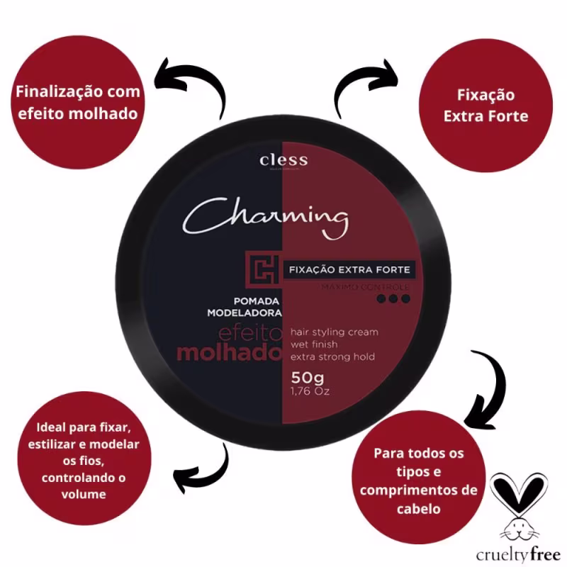 03 - Pomada Modeladora Cless Charming Extra Forte Efeito Molhado 50g