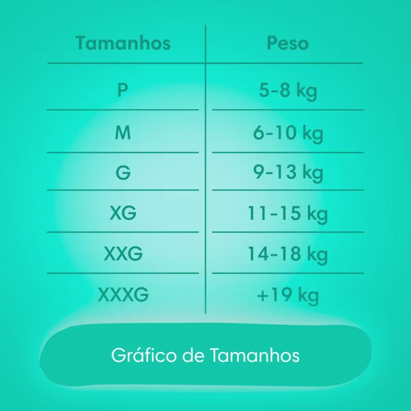 • Camada ultra absorvente: absorve rapidamente a umidade mantendo a pele do bebê sequinha.