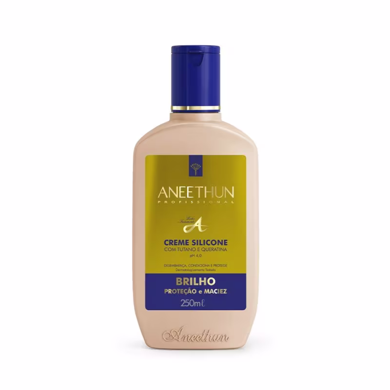 Aneethun Linha A - Creme de Silicone 250g: conta com ativos que facilitam o desembaraço, além de proteger as madeixas contra agentes externos e iluminar os fios.