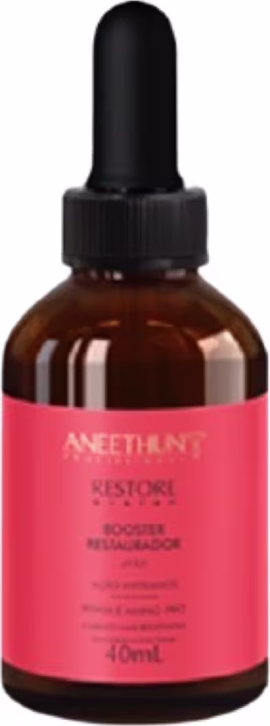 Booster Restaurador Aneethun Restore System: Combinação sinérgica de ativos que atua na camada mais profunda dos fios regenerando danos intensos. Permite realizar as técnicas de coloração, descoloração/mechas e alisamento com muita segurança. Preserva a integridade da fibra, devolve elasticidade e resistência aos cabelos.