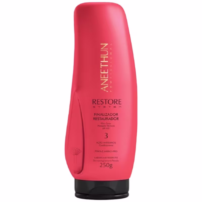 Finalizador Restaurador Aneethun Restore System: Oferece proteção térmica, devolve vitalidade, elasticidade e resistência aos cabelos