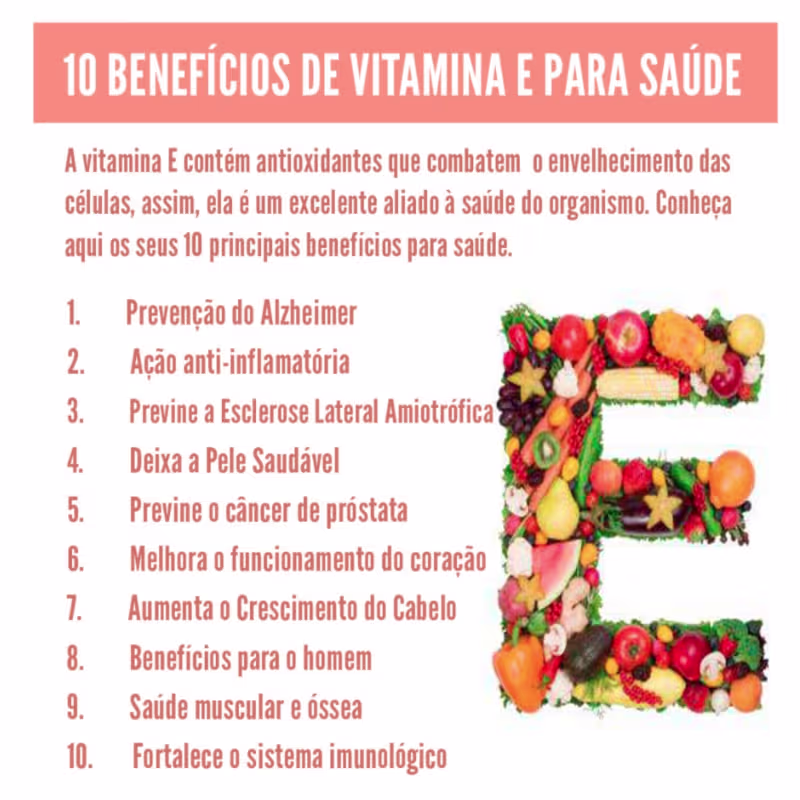 A vitamina E é uma vitamina essencial para o funcionamento do organismo, pois tem potente ação antioxidante, propriedades anti-inflamatórias, além de contribuir para o controle do colesterol ruim e melhorar a fertilidade, pois tem papel importante na produção dos hormônios.