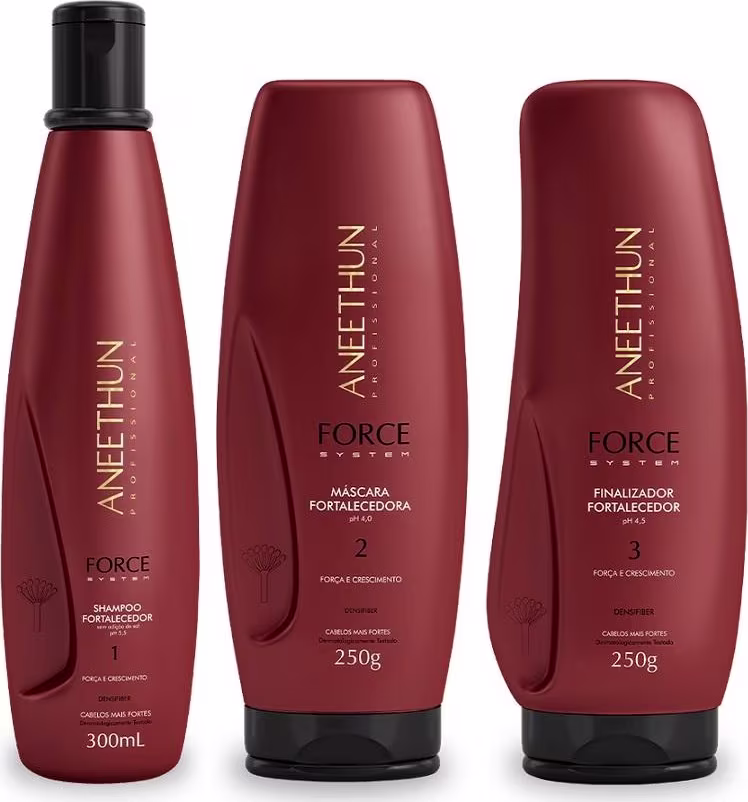 Desenvolvida para recuperar de forma intensa cabelos enfraquecidos e impulsionar o crescimento do fio, a linha Force System possui exclusiva tecnologia Densifiber que atua desde o bulbo até o córtex capilar.