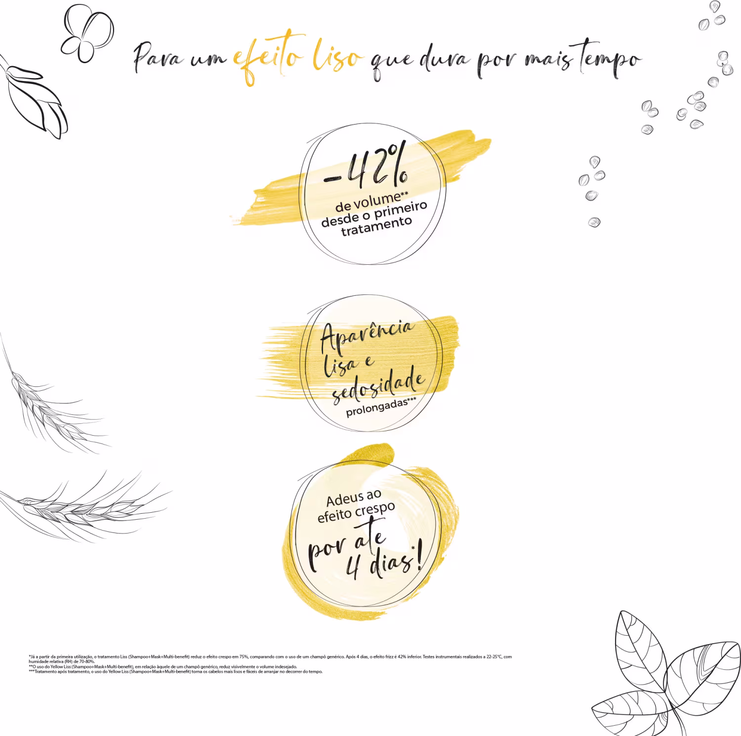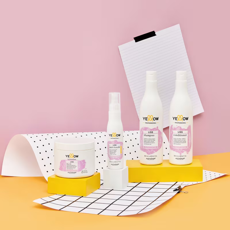 - Shampoo Yellow Liss: limpa delicadamente enquanto doa disciplinando e controle aos fios.