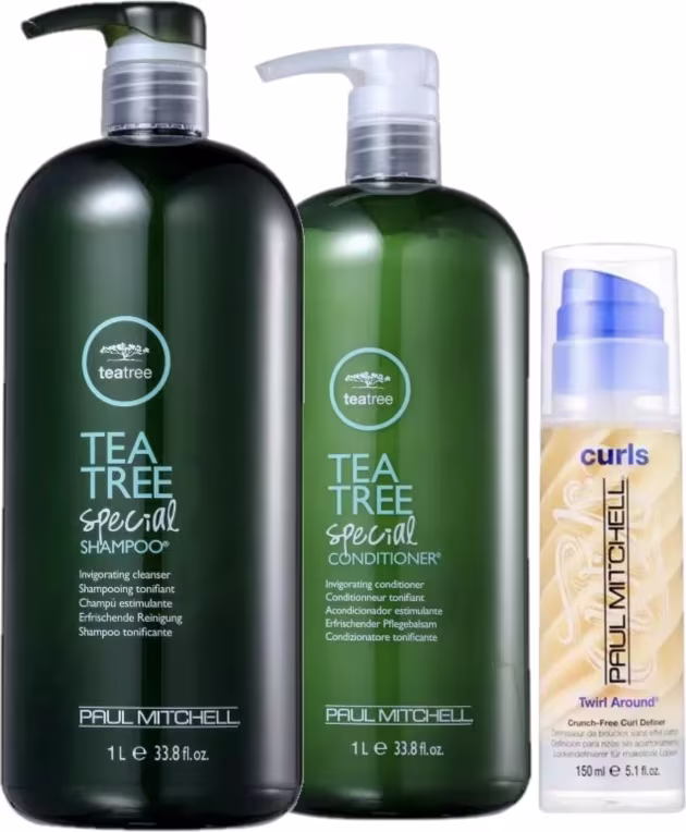 Experimente o Kit completo Paul Mitchell Tea Tree para uma limpeza refrescante, volume duradouro e cachos definidos com o ativador Paul Mitchell Curls Twirl Around.