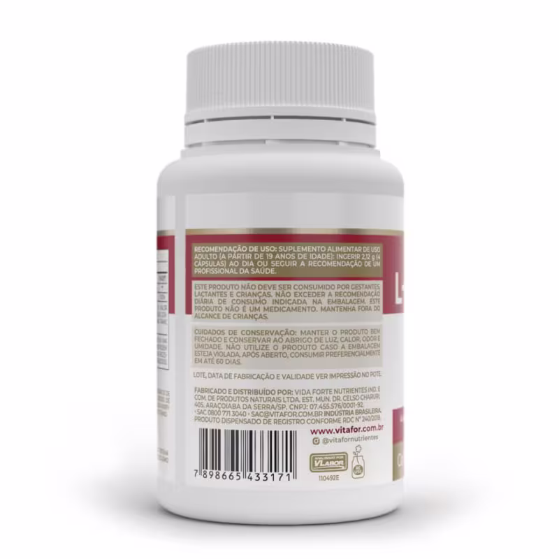 A L-CARNITINA Vitafor um suplemento alimentar com uma combinação estratégica de L-carnitina associada vitamina B6, auxiliando no metabolismo energético e sistema imunológico.