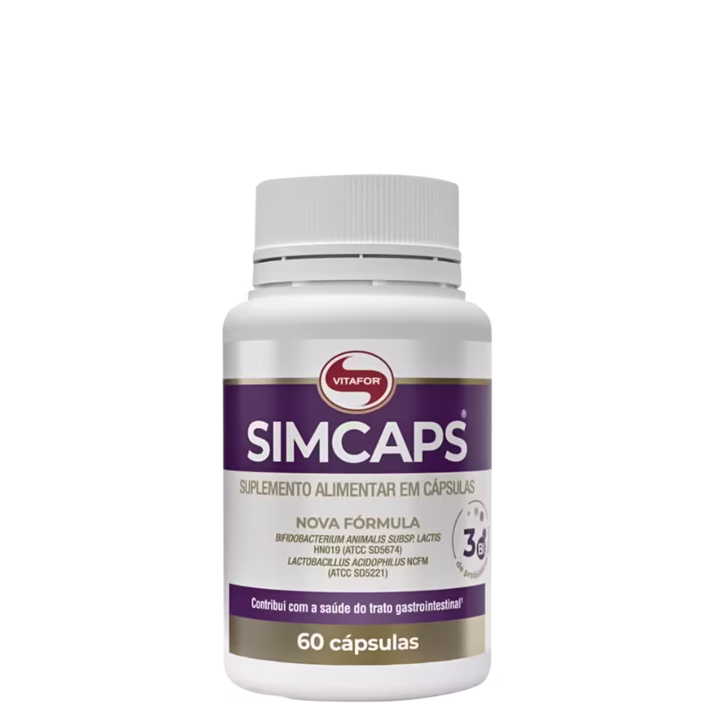 Ao ingerir estes probióticos você ajuda seu corpo a repor algumas bactérias boas mortas, e consequentemente reforça a microbiota intestinal e suas funções. SIMCAPS® Vitafor é um mix de probióticos (microrganismos vivos) em cápsulas que propicia diversos benefícios à saúde do intestino. Auxilia no equilíbrio da flora intestinal.