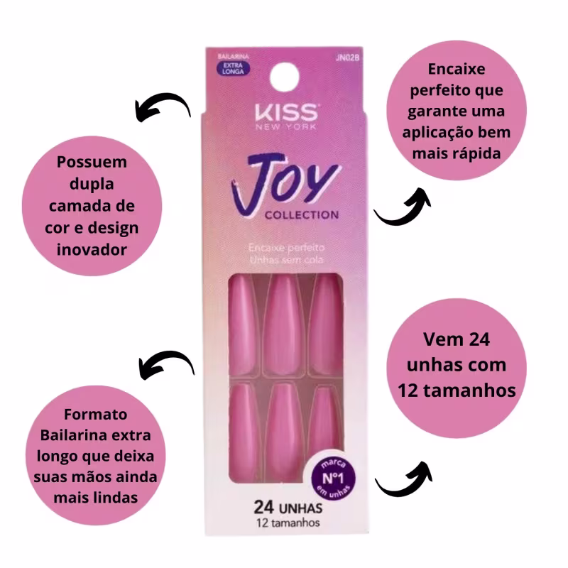 As unhas postiças possuem dupla camada de cor e seu formato bailarina extra longo deixam suas mãos ainda mais incríveis. Sem deixar de lado o conforto possuem encaixe perfeito que garante uma aplicação bem mais rápida. O resultado que só uma unha KISS NEW YORK pode proporcionar. As unhas postiças da Kiss New York possuem tecnologia de encaixe perfeito, tornando a aplicação das 24 unhas muito mais rápida e trazendo mais conforto na sua utilização.