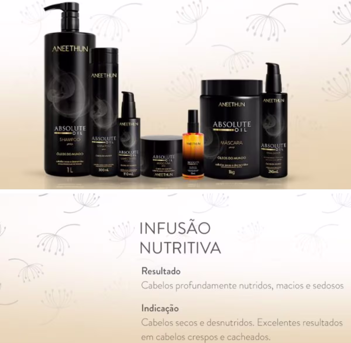 Kit Aneethun Shampoo,Máscara e Finalizador Absolute Oil
