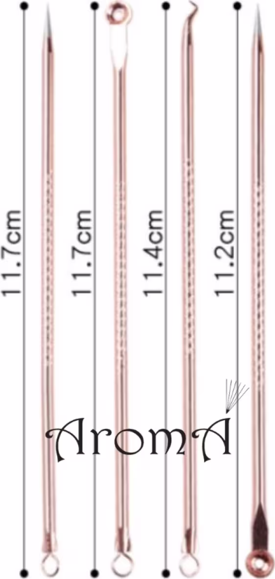 O kit extrator de acne e espinha rose gold Aromá conta com 4 peças: