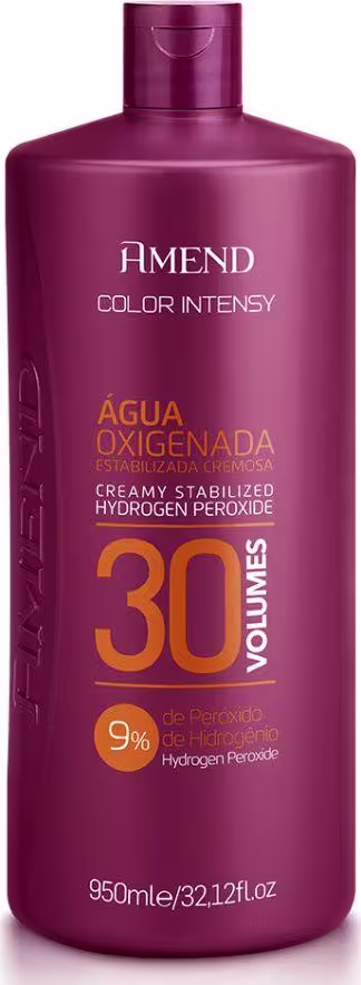 Água Oxigenada Cremosa Amend Color Intensy 30 volumes 950ml Especialmente desenvolvida para o uso com os produtos da linha Amend Color Intensy. Descolore e auxilia no tingimento dos cabelos. SÓ PARA USO PROFISSIONAL.