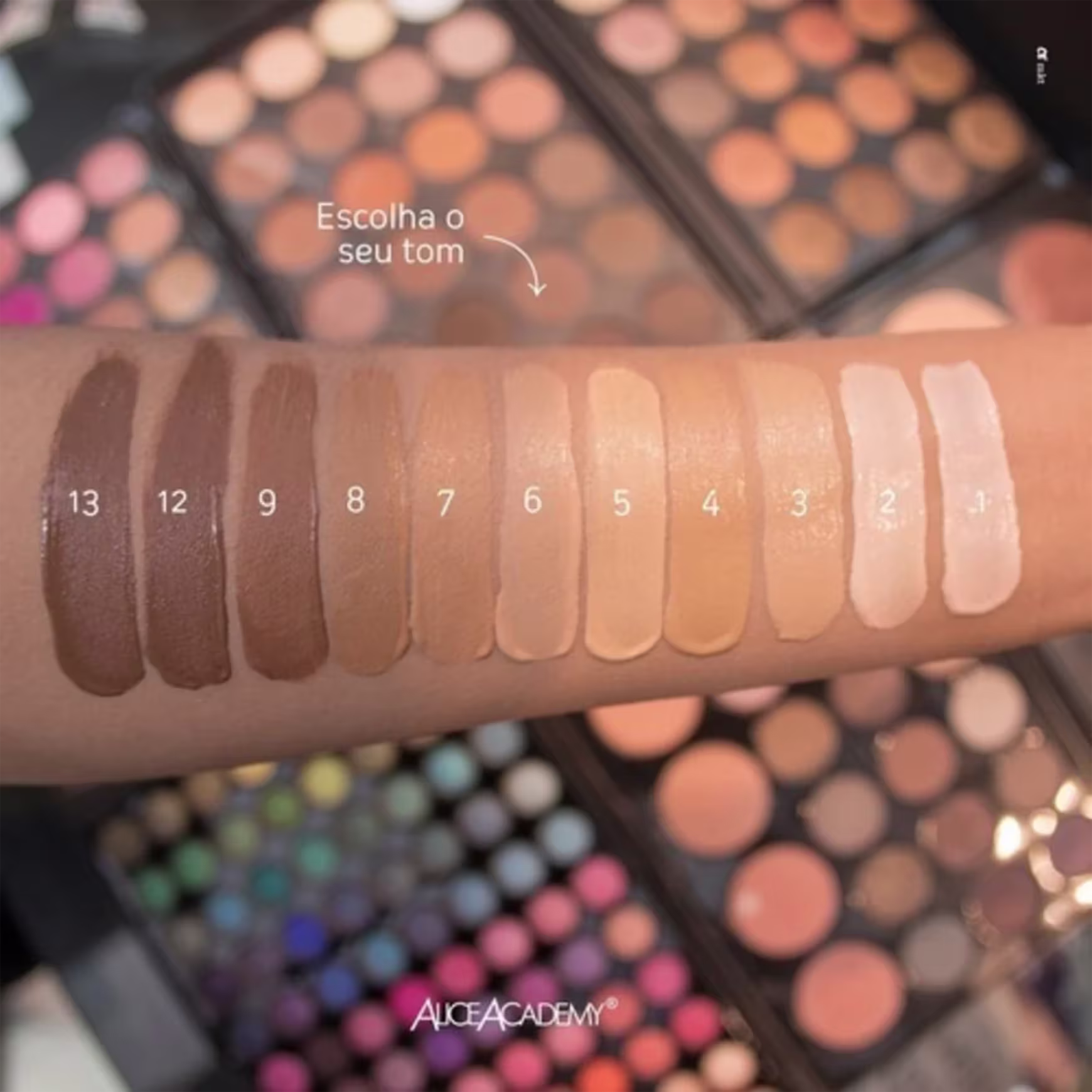 A Alice Academy é uma marca francesa, procurada por bons produtos de maquiagem para atendimento ou mesmo para o dia a dia na automaquiagem. A marca oferece produtos de ótima qualidade e preço acessível, que faz muito sucesso no Brasil, principalmente no cenário profissional. Os produtos possuem muita pigmentação e alta fixação, para as makes chegarem a outro nível! A Alice Academy produziu uma base líquida que possui alta cobertura, longa duração, hidratação e proteção solar. Além disso, possui fórmula livre de óleo, não obstrui os poros e é resistente à água. A Alice Academy é a escolha certa para quem busca um produto de qualidade, que ofereça todos os benefícios para a pele.