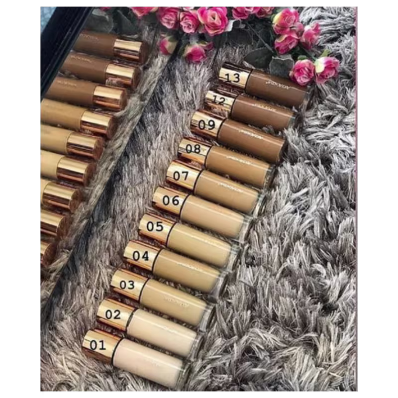 Base facial líquida de alta cobertura, longa duração, concentrada, cobre imperfeições, deixa a pele tipo porcelana, impecável.