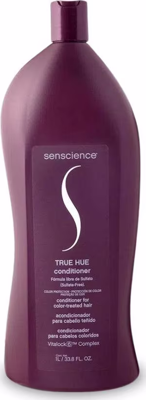 Kit Senscience True Hue Shampoo + Condicionador 1 Litro + Máscara 500g limpa, condiciona, desembaraça e preserva a tonalidade e o brilho da cor por muito mais tempo. Sua fórmula tecnológica deixa os fios hidratados de maneira suave e faz com que sua visita ao cabeleireiro seja menos frequente, já que protege do desbotamento.