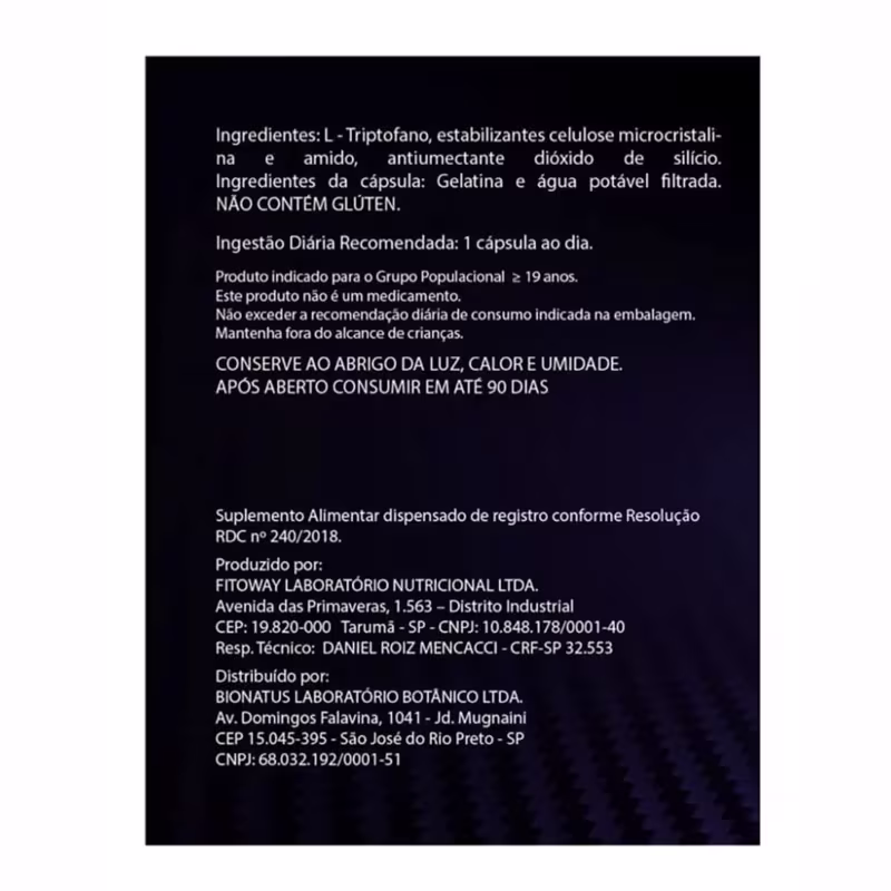 TRIPTOFANO 190MG 60CAPS BIONATUS