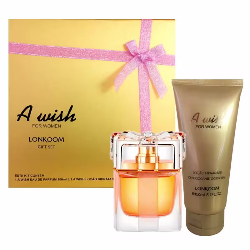 A Wish de Lonkoom é um perfume que traduz a vontade, o desejo de satisfação e realização. A mulher “Wish”,está sempre em busca da realização de seus sonhos, sempre querendo mais e mais, desejando, envolvendo e realizando todos os seus mais profundos sentimentos. Por tudo isso “A Wish”, já é uma jóia, um presente digno para a mulher.