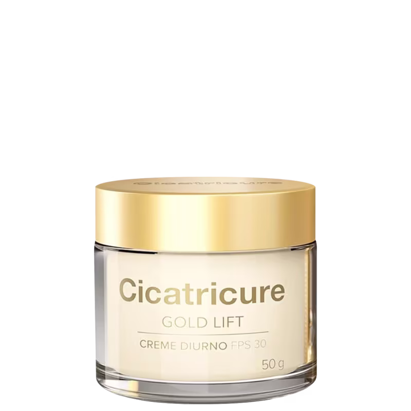 Cicatricure Gold Lift - Creme Diurno Antissinais 50g: combina o poder dos Peptídeos com Ouro, Cálcio e Silício, atuando na morfologia da pele, reduzindo a profundidade das rugas gravitacionais e redefinindo o contorno facial. Promove a recuperação da densidade e da elasticidade da pele, corrigindo visivelmente as zonas do rosto mais marcadas pela idade. Protege contra a radiação UV: FPS30 e FP UVA10. Textura não oleosa.