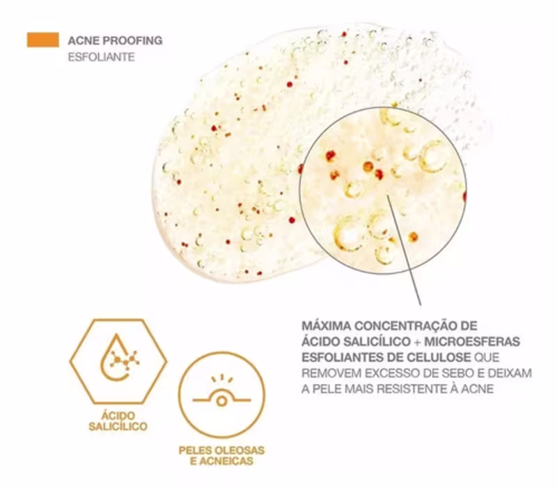 Aplique o esfoliante sobre o rosto úmido, massageando suavemente em movimentos circulares, após a limpeza com o sabonete Acne Proofing. Evite a área dos olhos durante a aplicação. Em seguida, enxágue abundantemente para remover completamente o produto.