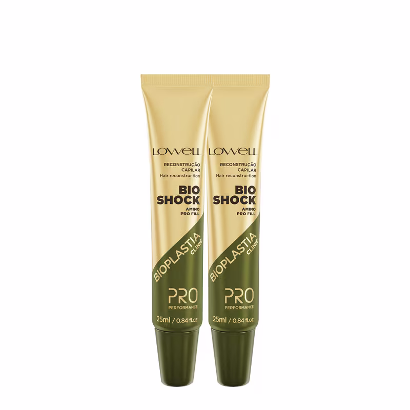Lowell Bioplastia Clinic Bio Shock - Tratamento Reconstrutor 25ml (2 unidades): garante reconstrução em 3 minutos. Indicada especialmente para uso pós processos químicos, como alisamentos e descolorações garante fios fortes e saudáveis.