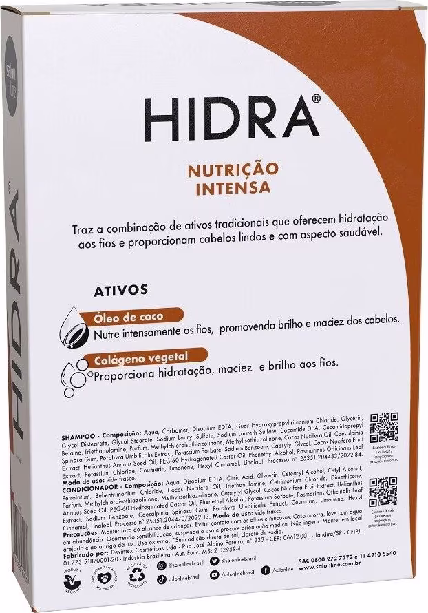 Kit Shampoo e Condicionador Hidra Coco Leite de coco: hidrata e nutre profundamente os fios. Colágeno: sela a cutícula dos fios e protege contra as agressões externas.