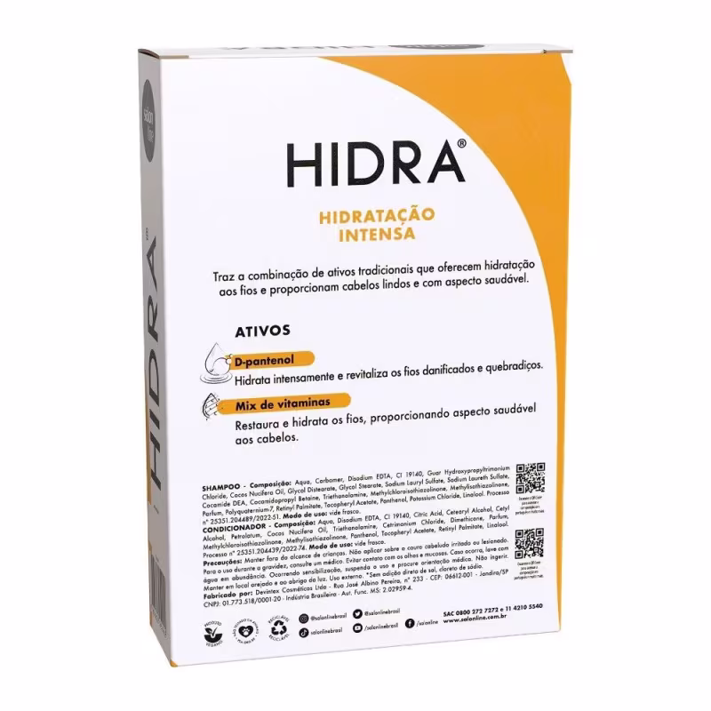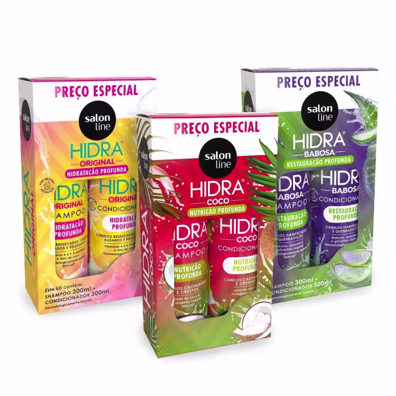 Kit Hidra Original Vitamina A: aliada do crescimento saudável, restaura a hidratação dos fios. D-pantenol: mantém a saúde e a hidratação dos cabelos. Vitamina E: ação antioxidante e combate os radicais livres. Óleo de coco: regenera a estrutura interna do fio.