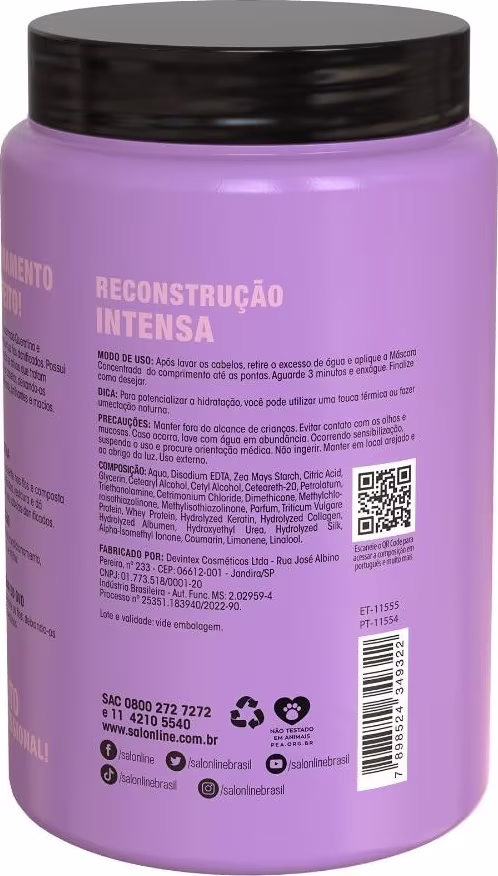 Máscara Concentrada S.O.S Hidratação Bio-Reconstrução Fortalecedora Proteína do ovo: rico em proteína, vitaminas e minerais para o cabelo, o ovo fortalece e mantém os fios saudáveis, macios e brilhosos. Queratina: proteína fibrosa, ajudar a devolver a resistência e a elasticidade dos cabelos. Colágeno: proteína que ajuda na reposição proteica e na saúde dos fios.
