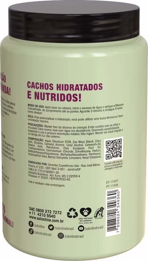 <>ATIVOS$& Quais os principais ativos? Máscara Concentrada S.O.S Hidratação Ultra Cachos D-pantenol: proveniente da vitamina B12, proporciona hidratação capilar profunda, melhora a textura da fibra capilar, diminui as pontas duplas e garante mais força aos fios. Azeite de oliva: popularmente conhecido por seu forte poder de hidratação, o azeite de oliva é um antioxidante fundamental para combater o ressecamento dos fios.