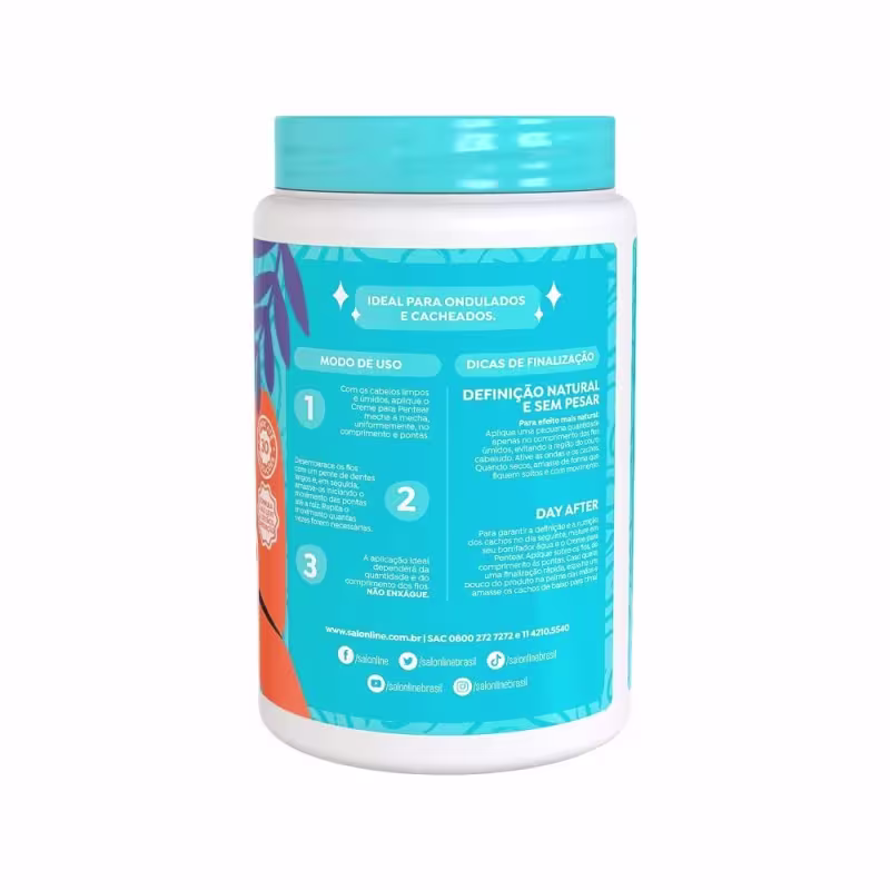 <>MODO DE USO$& Qual a melhor forma de usar? Com os cabelos limpos e úmidos, aplique o Creme para Pentear mecha a mecha, uniformemente, no comprimento e pontas. Desembarace os fios com um pente de dentes largos e, em seguida, amasse-os iniciando o movimento das pontas até a raiz. Repita o movimento quantas vezes forem necessárias. A aplicação ideal dependerá da quantidade e do comprimento dos fios. Não enxágue.