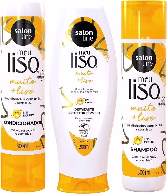 Kit com Shampoo + Condicionador + Defrizante Meu Liso Muito+Liso Salon Line