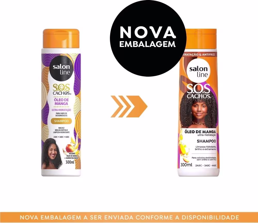 Shampoo S.O.S Cachos Óleo de Manga:aplique o Shampoo Manga Tradicional S.O.S Cachos Salon Line uniformemente no cabelo molhado. Massageie suavemente até formar espuma. Enxágue.