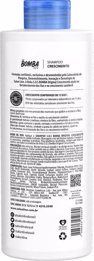 O Shampoo e o Condicionador S.O.S Bomba Original não são liberados. O Tônico Fortalecedor S.O.S Bomba é liberado