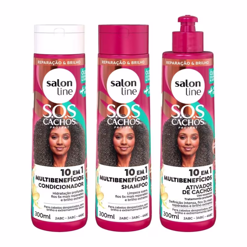 Kit SOS Cachos 10 em 1 Multibenefícios com Ativador de cachos Salon Line