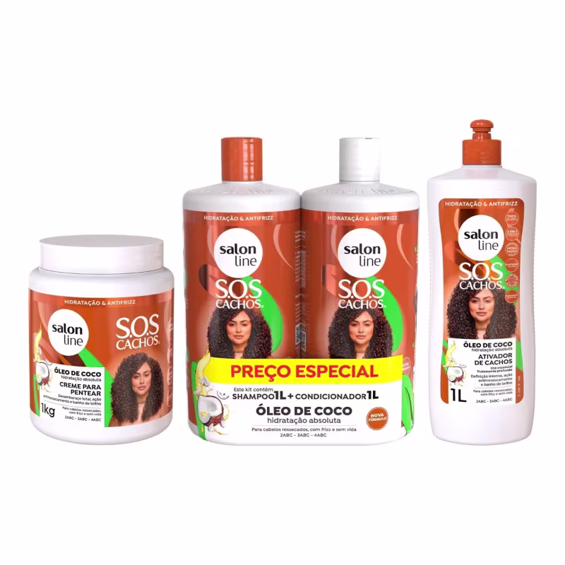 Kit SOS Cachos Coco Familia com Creme e Ativador Litrão Salon Line