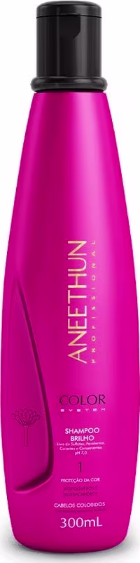 Aneethun Color System - Shampoo 2x300ml: oferece limpeza delicada e eficaz, protege a fibra capilar, prolonga o efeito da Coloração, promovendo um brilho intenso.