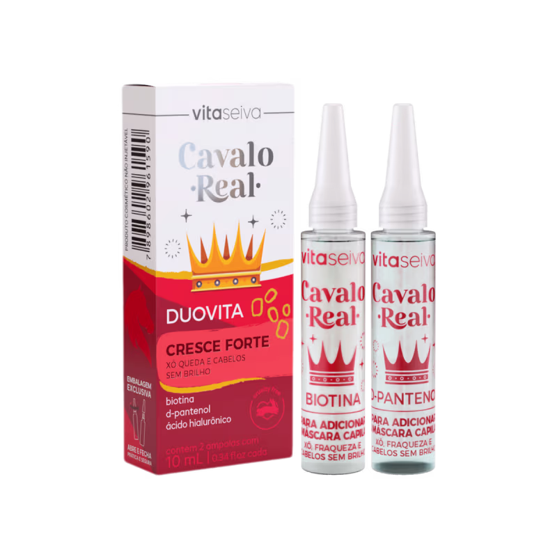 A linha Cavalo Real foi desenvolvida com foco em acelerar o crescimento dos fios, tornando- os mais fortes, resistentes e saudáveis. A grande quantidade de extratos naturais presentes, além do incrível complexo vitamínico, proporciona aos cabelos hidratação, brilho e maciez intensos. Esta linha de tratamento trabalha com diversos produtos de grande aceitação do público consumidor da Vita Seiva e atende às necessidades de quem deseja fios mais longos em um curto período de tempo, além de cabelos revitalizados por completo.