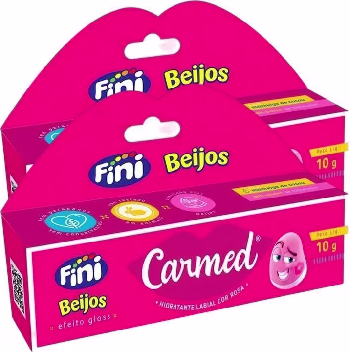 Carmed® Hidratante Labial Cheirinho Fini Beijos, com cor, de uso diário, com alto poder de hidratação, protege contra o ressecamento, deixando os lábios macios e saudáveis.