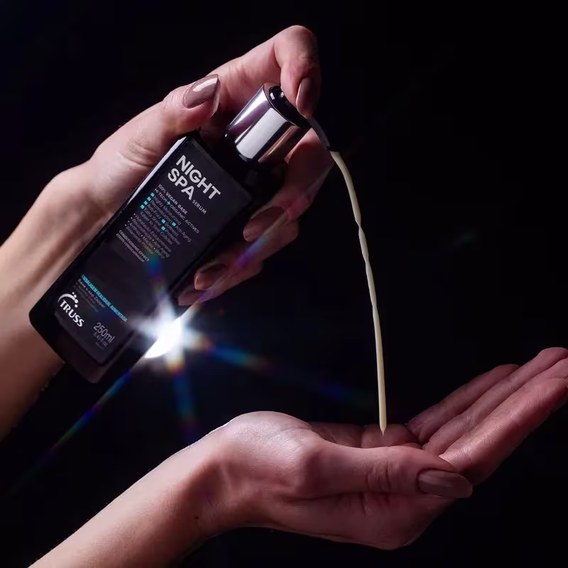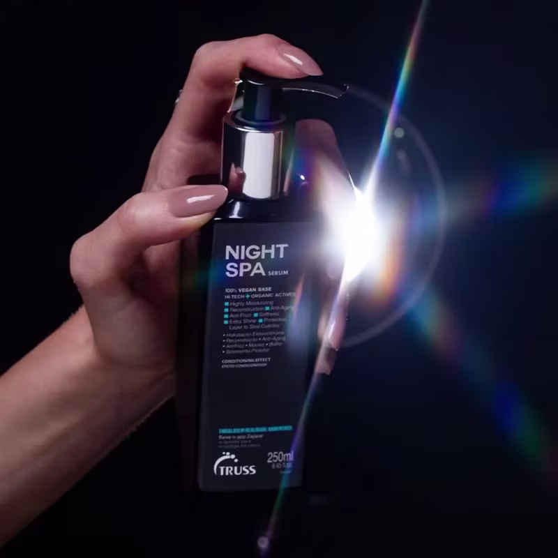 Truss Night Spa - Sérum de Tratamento Noturno 250ml: proporciona uma blindagem que mantém os nutrientes dentro da fibra capilar. Previne a ação dos agentes externos, que reduzem o frizz e aumenta o brilho. Regenera a fibra capilar danificada e disciplina fios arrepiados.
